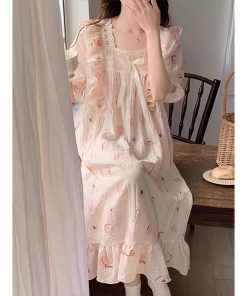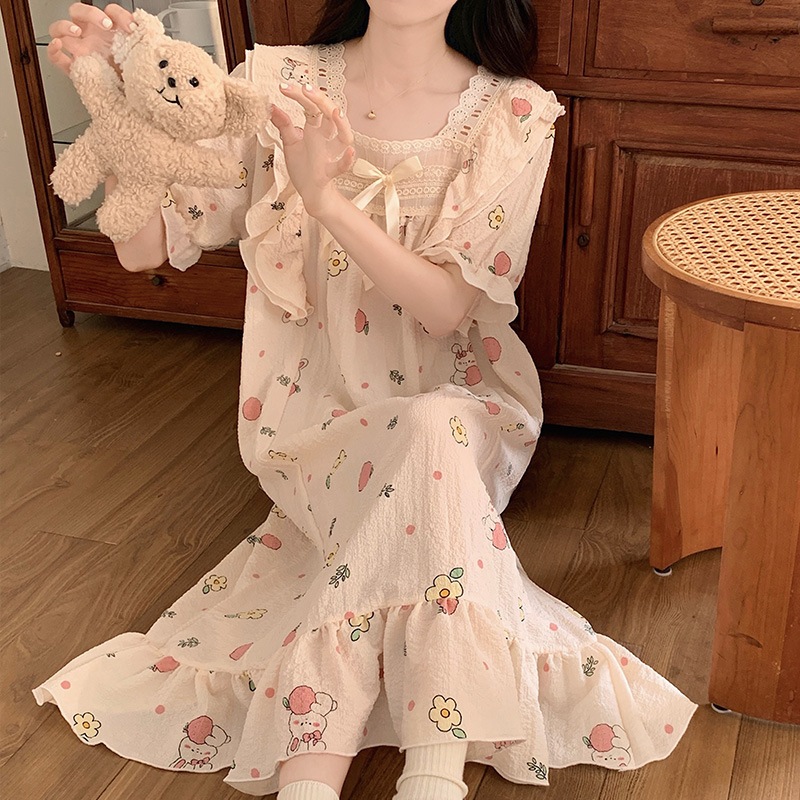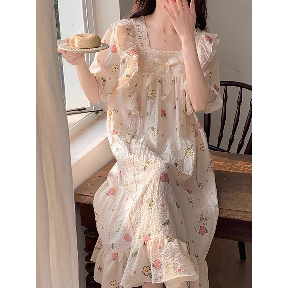 Váy đầm ngủ nữ công chúa tay lửng thoái mái ngọt ngào đồ mặc nhà bigsize đồ bầu tiểu thư mặc đi ngủ mát mẻ mùa hè 90.1