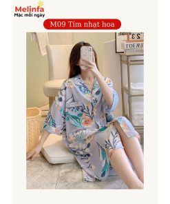 Sẵn Váy đầm ngủ Pijama ngắn tay, cài cúc mặc nhà vải Cotton tự nhiên mềm mại thoáng mát, đầm lanh, váy bầu mã VAV0409-thoitrangcenter