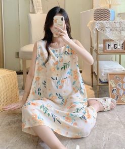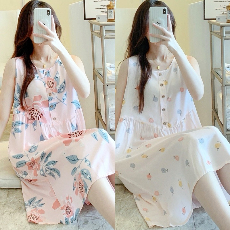 Váy mặc nhà lanh lụa (tole) freesize mềm mát nhiều hoạ tiết SNC1 Thời Trang Center