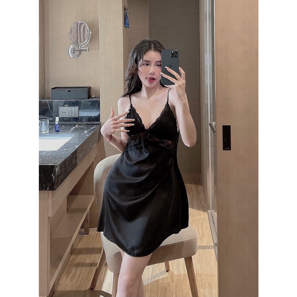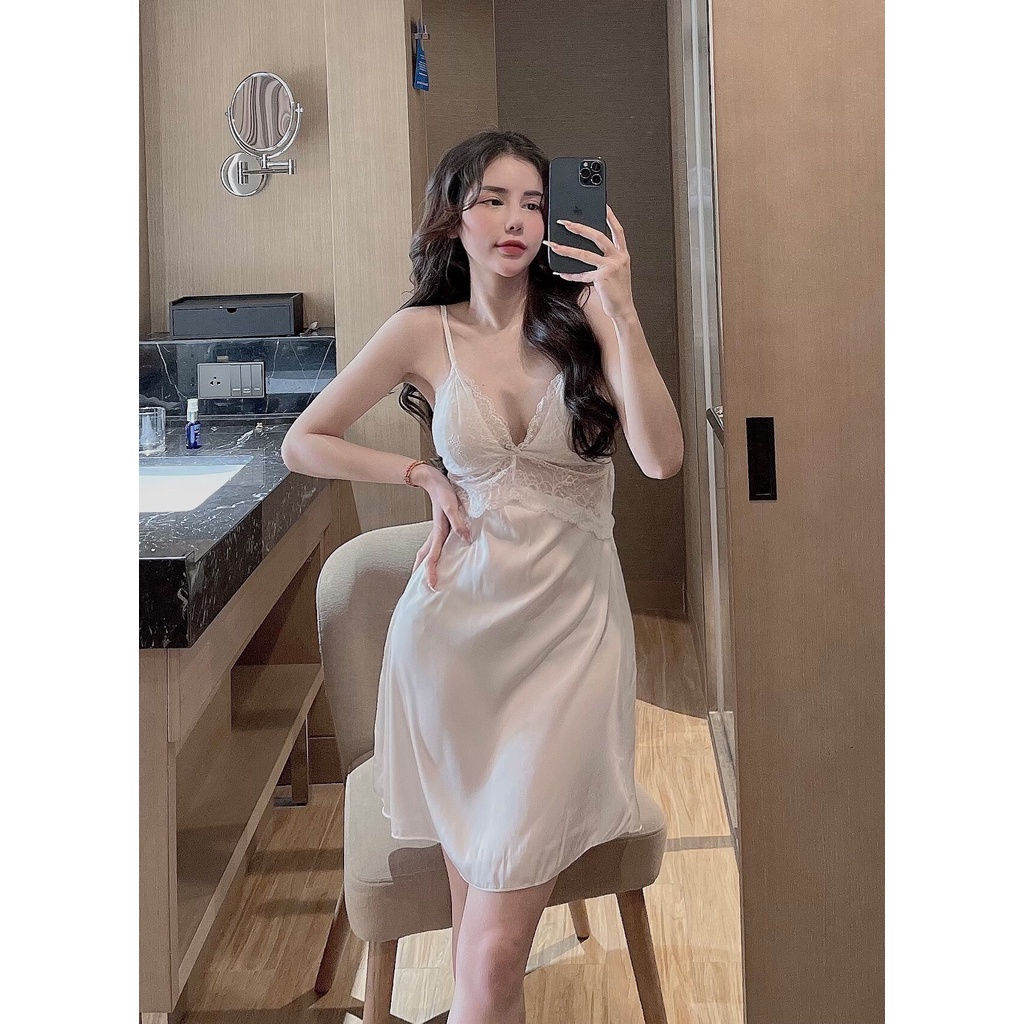 Váy Ngủ 2 Dây Phối Ren Có Mút Ngực Lụa Cực Mát – Đầm Ngủ Sexy Freesize