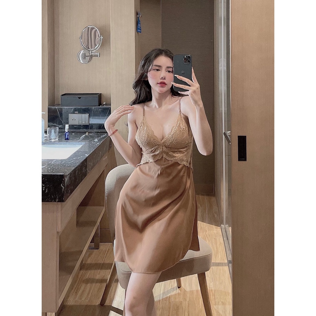 Váy Ngủ 2 Dây Phối Ren Có Mút Ngực Lụa Cực Mát – Đầm Ngủ Sexy Freesize Thời Trang Center