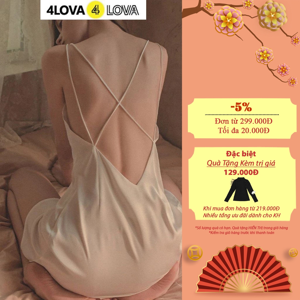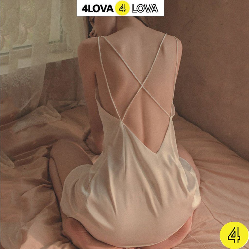 Sẵn Váy ngủ 2 dây sexy 4LOVA chất lụa ngọc trai cao cấp kiểu đan lưng sang trọng quyến rũ VNQ2-thoitrangcenter