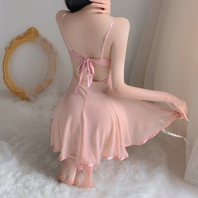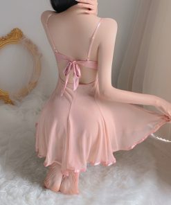 Váy Ngủ 2 Dây Sexy Ren Xuyên Thấu Hở Lưng Thắt Nơ Sau Gợi Cảm Có Quần Lọt Khe, Đồ Ngủ Nữ Sexy – S16 Thời Trang Center