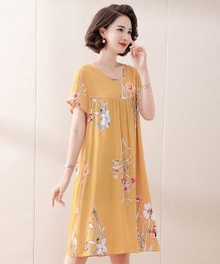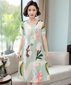 Váy ngủ dài vừa phải dành cho nữ Bộ đồ ngủ rộng thực vật Váy hoa in hình Loungewear plus size M-5XL 30-100kg Thời Trang Center