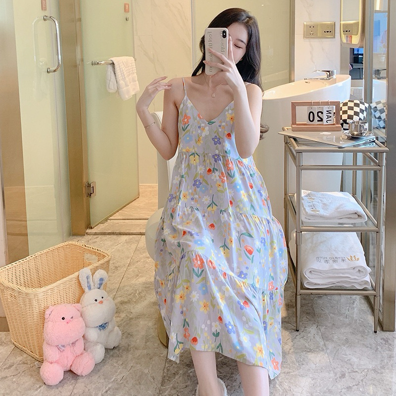 Váy ngủ đầm ngủ hai dây mặc nhà váy bầu lanh mặc nhà V4 Thời Trang Center