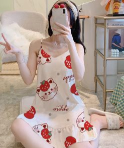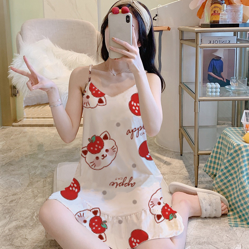Váy ngủ hai dây sexy, đầm ngủ thun cotton hoạt hình mềm không có đệm ngực dễ thương Thời Trang Center