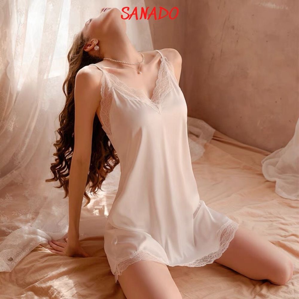 Váy ngủ lụa 2 dây SANADO hàng quảng châu cao cấp đầm mặc nhà quyến rũ V05 Thời Trang Center