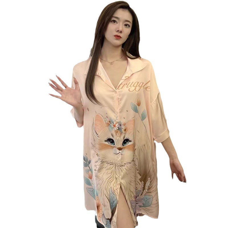 Sẵn Váy Ngủ Lụa băng hoa nhí phong cách phương Tây váy ngủ áo sơ mi rộng rãi phong cách Instagram thuần khiết mẫu dài vừa dễ thương nổi tiếng trên mạng mẫu hè cho nữ-thoitrangcenter