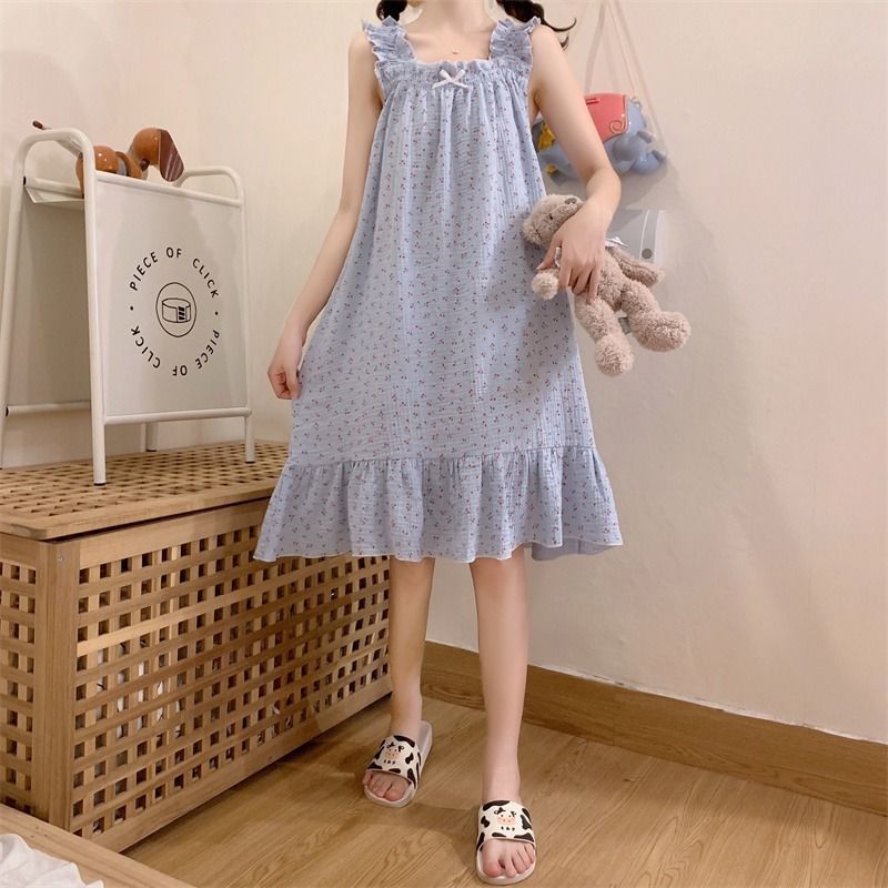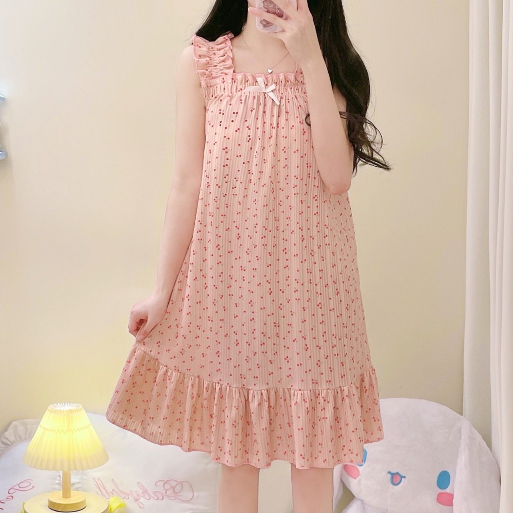 Sẵn Váy ngủ mặc nhà hai dây họa tiết hoa quả xinh xắn MS9276 Đầm ngủ nữ Đồ ngủ nữ-thoitrangcenter