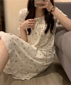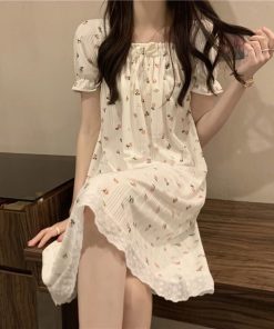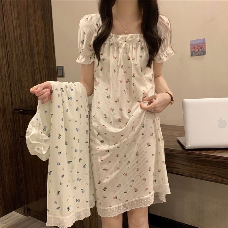 váy ngủ ngắn tay phong cách công chúa in hoa mới chất lượng cao phục vụ tại nhà mùa hè Thời Trang Center