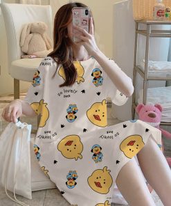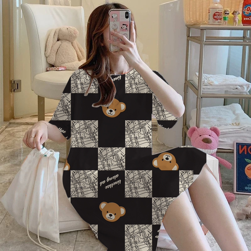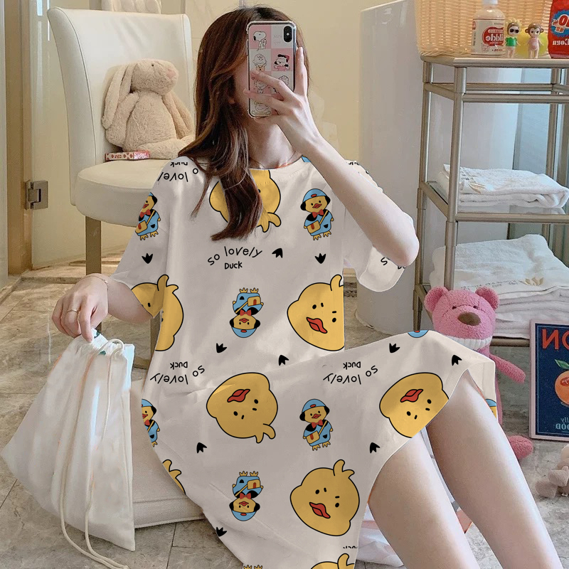 Váy Nữ, Đầm Ngủ Cộc Tay sexy, Đầm Ngủ Suông Chất Cotton Mềm Mát Mặc Nhà Dễ Thương_VN33 Thời Trang Center