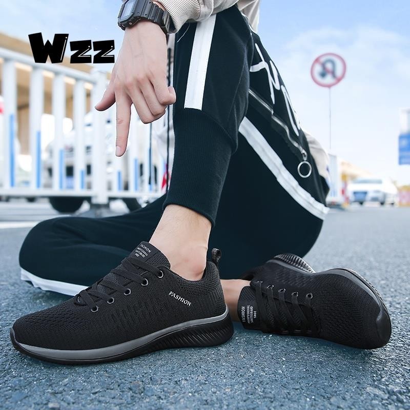 Wzz 2024 Plus Size 36-48 Cặp đôi Low Top Giày thể thao thông thường chống trượt Giày chạy bộ lưới thoáng khí Giày đen cho cặp đôi 9088 Thời Trang Center