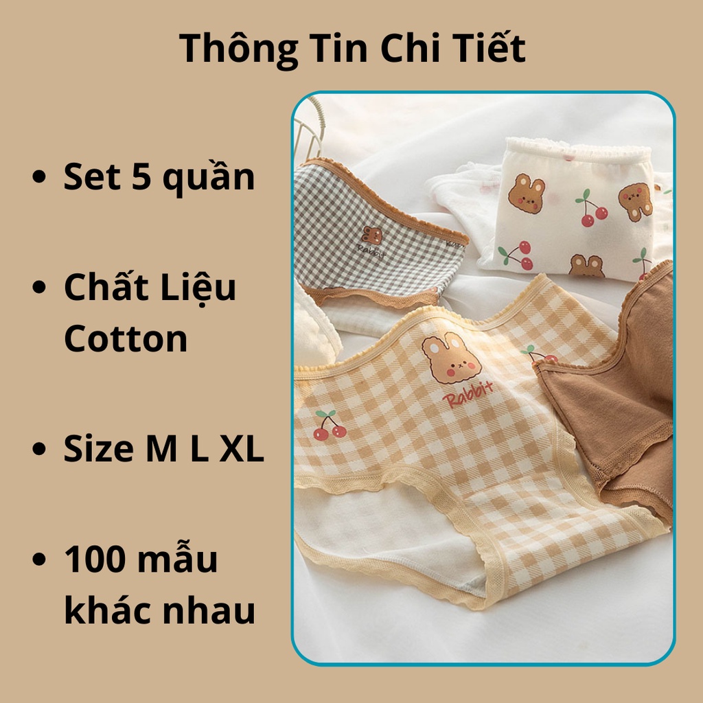 SET 5 Quần Lót Cotton Nữ Kháng Khuẩn Quần Chip Nữ Thoáng Khí Thấm Hút Mồ Hôi Có Tặng Quà Chính TOPBRA Thời Trang Center