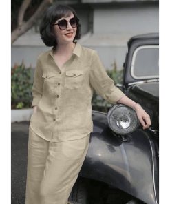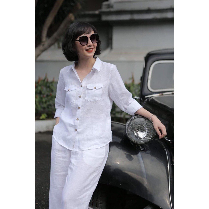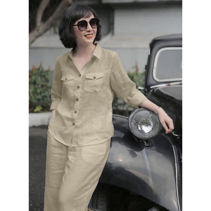 Bộ Đũi Nữ, Áo Dài Tay, Quần Dài Ống Suông, Lưng Thun, Không Nhăn, Dấu Bụng Và Tôn Dáng.