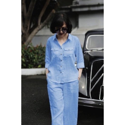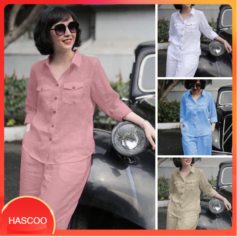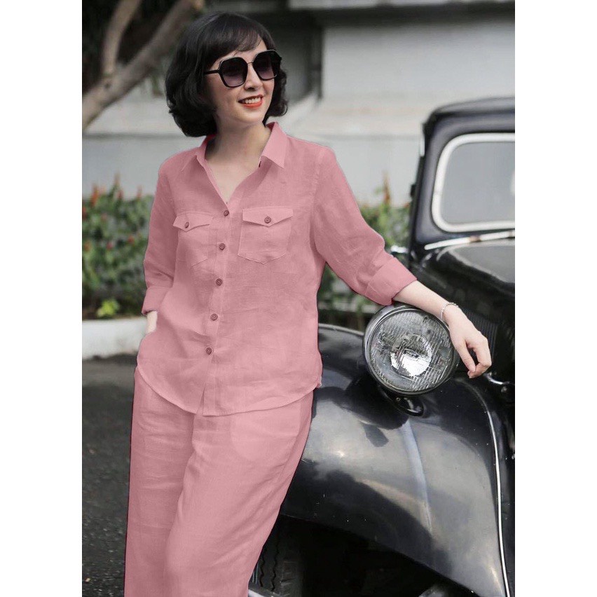 Set Bộ Đũi Nữ, Áo Dài Tay, Quần Dài Ống Suông, Lưng Thun Chất Đũi Hàn Quốc hc1.4 – DD Thời Trang Center