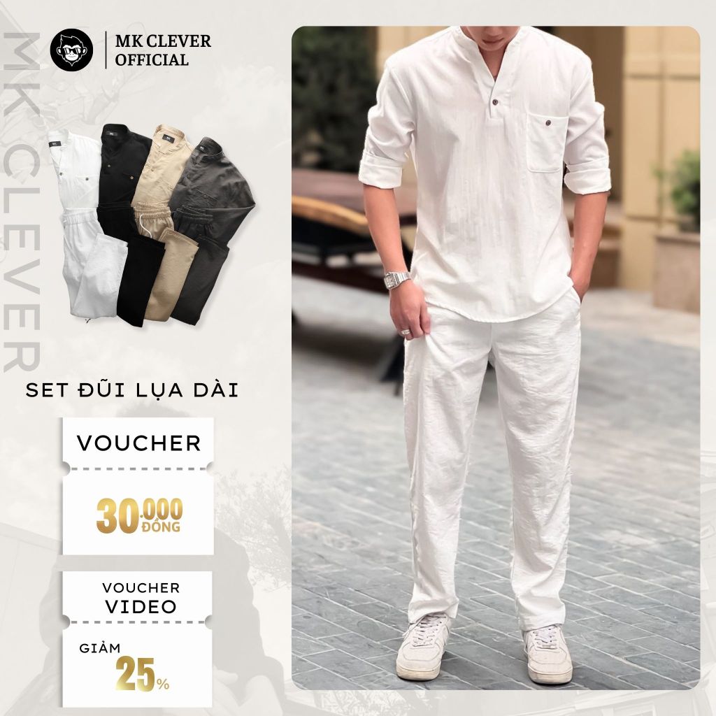 Set Bộ Đũi Lụa Dài Tay MK CLEVER Chất liệu vải đũi gân nhẹ, thoáng mát, co giãn, thoải mái, form Regular