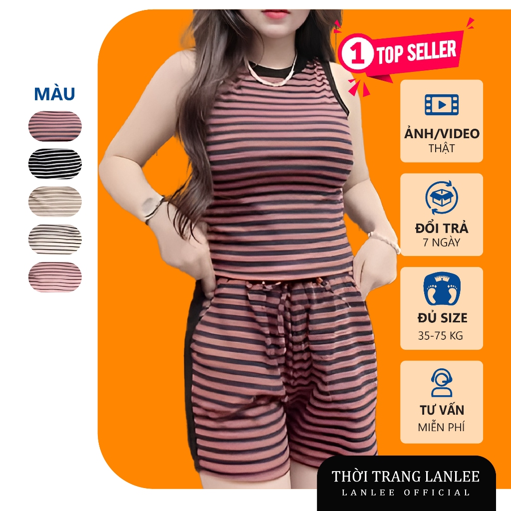 Set Đồ Bộ Nữ Hè LANLEE Official Chất Thun Tăm Áo Sát Nách Quần Short Mềm Mịn Mát Mã S Thời Trang Center