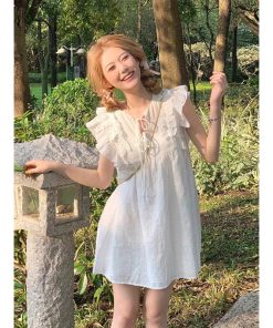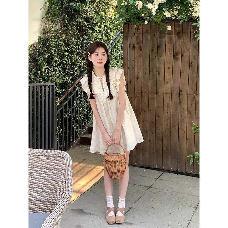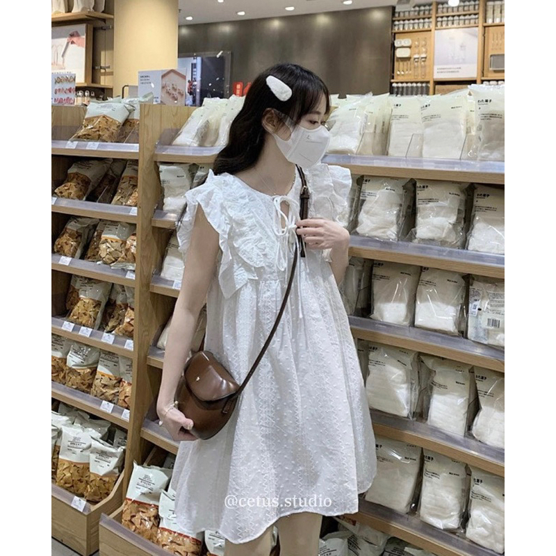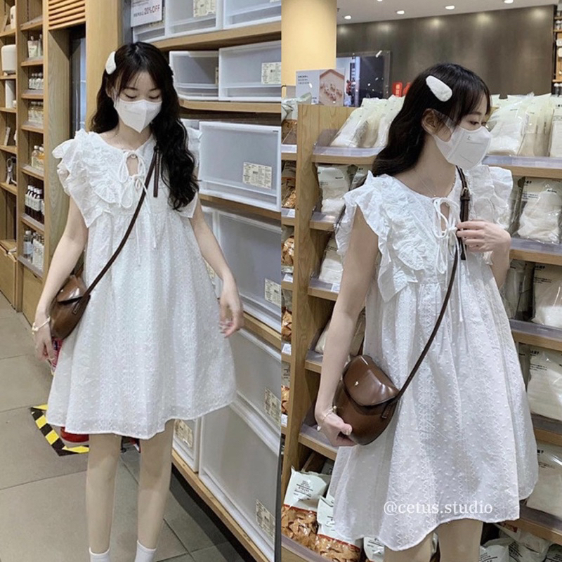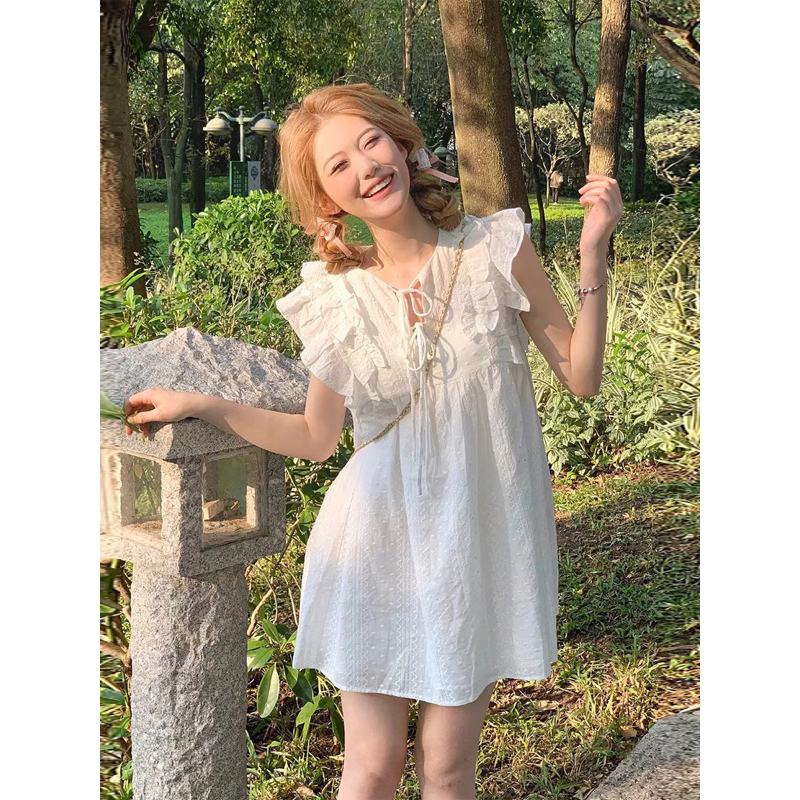 [V1.375] Váy Thô Ren Trắng Dáng Babydoll Hàn Quốc, Đầm Baydoll Trắng Tiểu Thư 2 Lớp Có Ảnh Thật Thời Trang Center