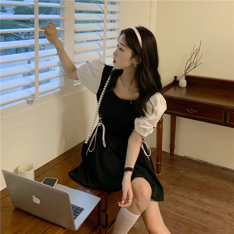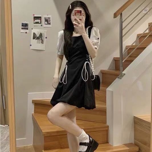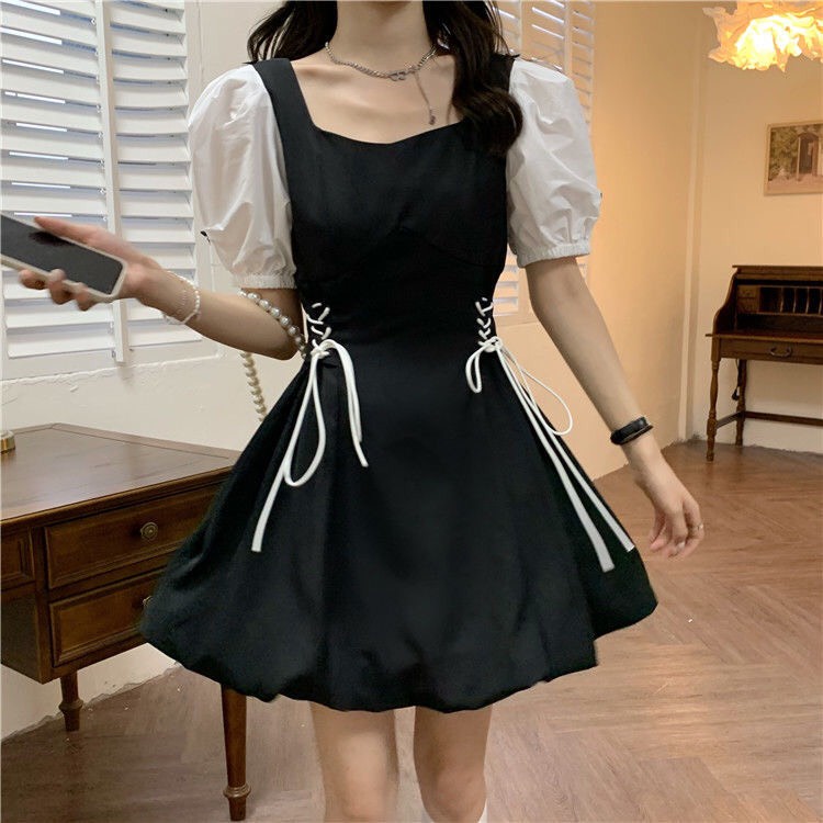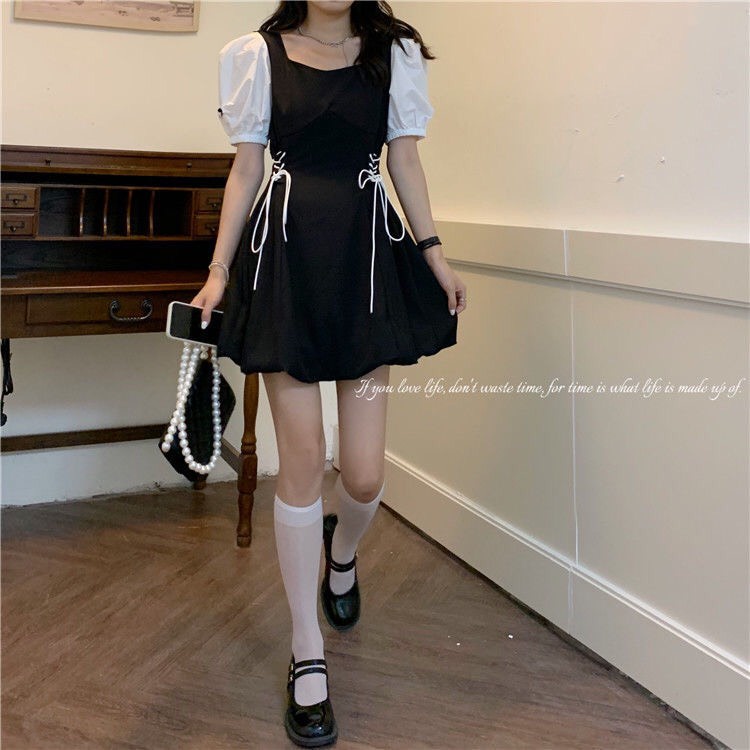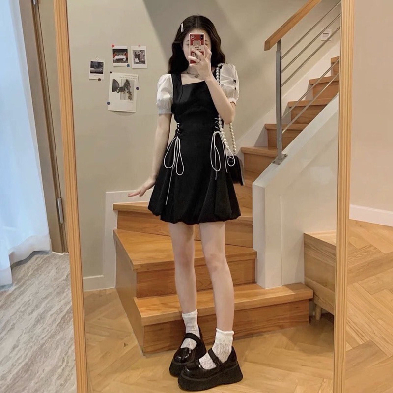❤Váy chữ A tay trắng có dây nơ rút 2 bên xinh xắn❤